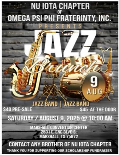 The Brothers of Nu Iota hosted a Jazz Brunch for the community of Marshall, Texas in efforts to further raise funds to support the annual Scholarship.
